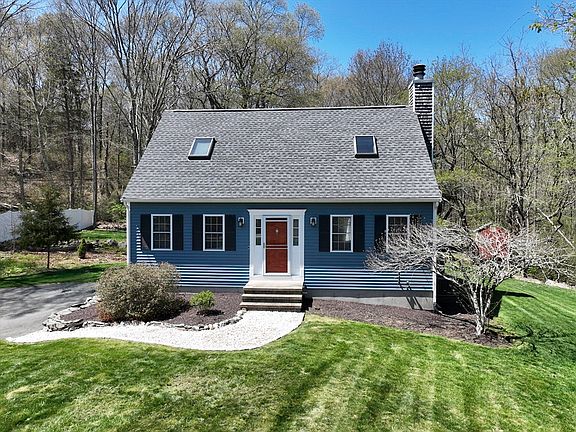 Nestled on a quiet, tree-lined street this classic Cape-style home offers the perfect blend of comfort, privacy, and New England charm. Set well back on a beautifully wooded lot, this home is a peaceful retreat surrounded by natural beauty. Step inside to find a bright, airy living space with sun-filled skylights, central air conditioning, and a fireplaced living room—ideal for relaxing or entertaining. The spacious kitchen features stunning maple cabinetry, a center island, and an open flow to the living area. Upstairs, you’ll find three bedrooms, along with a full bath and ample closet space. The bright, beautiful finished basement offers flexible space for a home office, gym, playroom, or media area. Outside, enjoy superbly landscaped grounds with vibrant gardens, mature plantings, and a utility shed. A wood deck off the back of the house provides the perfect spot to entertain, grill, and to take in the peaceful surroundings.