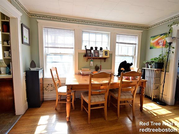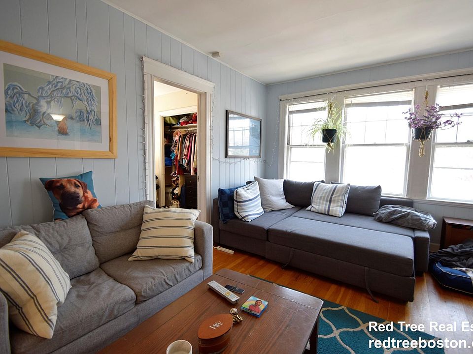 Spacious and Sunny, this top floor 3 bedroom a gem! Features include hardwood floors, a 4 seasons porch, eat in kitchen, separate dining room and 3 large, equal sized bedrooms. Only 1st month rent and broker fee required for deposit {pending credit/debt check} - No Security - No Last Month Rent. Tenant pays for gas and electric.