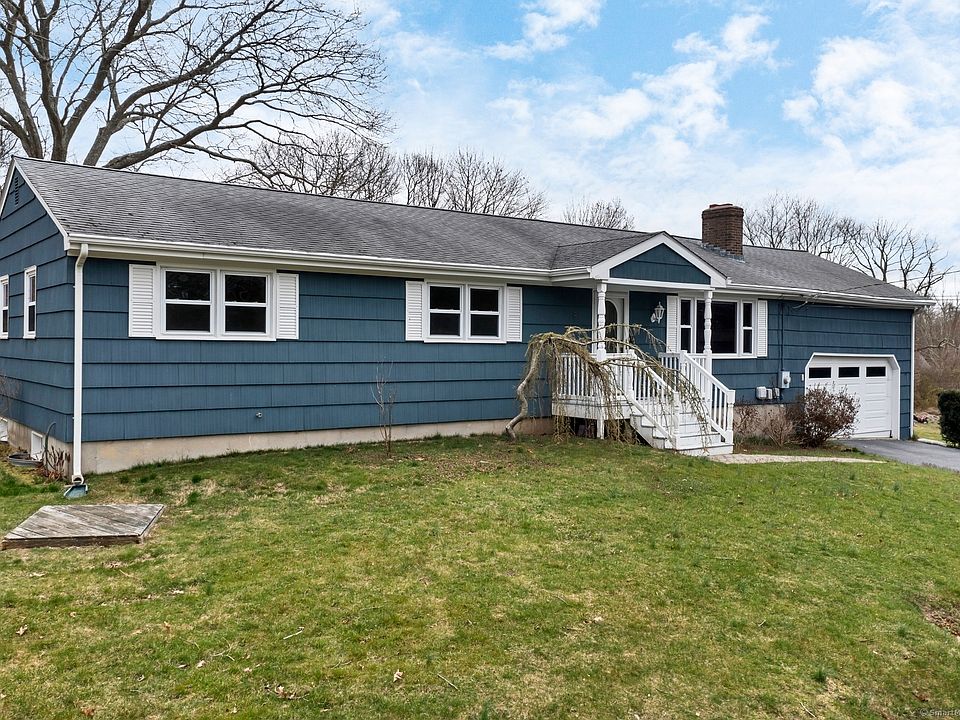 Impeccably maintained 3 bedroom, 1.5 bathroom Ranch with a 2 car garage and a partially finished basement set on .8 acres. This one level home boasts a huge living room with a wood burning fireplace to keep warm on those cool nights and wall to wall carpeting that flow into the dining room accented with hardwood floors and a Andersen slider that offers access to the rear wood deck overlooking the fenced in backyard space and concrete patio. The kitchen is sure to please any potential buyers featuring a tiled floor and backsplash, laminate counters, wood cabinets, SS sink and access the attached garage. The full main floor full bathroom is appointed with a tiled floor, natural wood vanity with laminate counters and a full tub/shower combination. The hallway closet on the main floor offer the first floor laundry area for convenience. Three generously sized bedrooms on the main floor all boast wall to wall carpeting and ample closet space. The lower level features a massive family room with engineered hardwood floors, built in storage and a updated half bathroom perfect for entertaining. Updates include new well pump in 2015, new garage door 2019, oil tank 2014, 200 amp electrical and a Generator with hookup for peace of mind. Great yard space and this home is convenient to highways, shopping, restaurants, Conn College, Casinos, EB and much more.