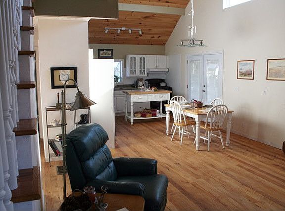 Chateau style home, 2 bedrooms downstairs with a loft bedroom upstairs. 1 full bath downstairs, 1 in the loft and a 1/2 bath in the basement.Property has approximately 8 acres of tillable land for potential income. Detached garage/ metal building with a partial concrete floor.Horse stable with fenced pasture. Chicken coop and pen. An additional deck has been added in the front of the home tied in with the original side deck. Fruit trees, blueberries, chestnut and pecan trees have all been planted and thriving.