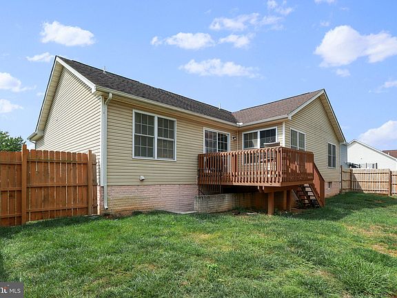 One level living! Open floor plan ranch style home in great neighborhood, close to I81 at Tabler Station Road. The home has a privacy fenced back yard and deck plus front porch on this nice lot. The main level includes so many beautiful features from the tray ceilings and upgraded fixtures, to tile backspash in kitchen. There is a formal dining area and formal living room. The kitchen has white cabinetry, upgraded counter tops, and stainless steel appliances. Spacious owner bedroom en suite opposite side of the home from the two spacious guest bedrooms and second bathroom. The basement is finished with a large recreation/family room and den, plus third full bathroom! Nearly new HVAC system. Don't miss this lovely home and all it has to offer!