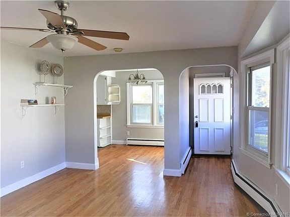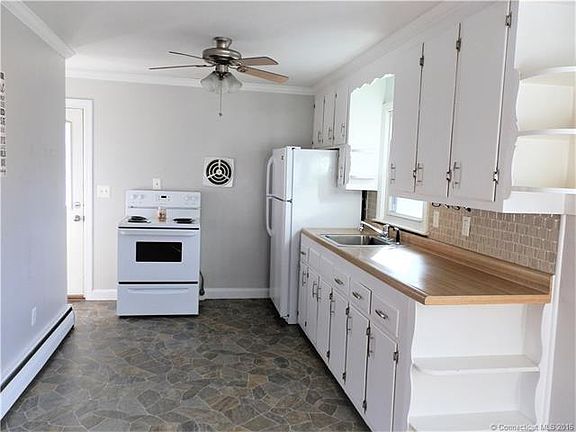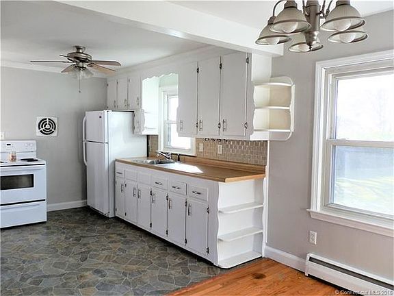 Clean classic ranch, located on a cul-de-sac, shiny wood floors, freshly painted. Kitchen offers clean white cabinets with new door handles and tiled back splash. There is a glass door that enters into a Dining room or the third bedroom that has wood floors. There is bright and casual dining area off the kitchen that faces the Living room. The main level full bath has been updated. Notice the new windows throughout. The lower level offers a tiled floor, built in wall units with backlighting perfect for a great room. There is also a separate room that works for a fourth bedroom or office area. Plenty of storage can be found in a walk-in closet or in the unfinished basement area where the laundry room is located. Not to be missed is the second full updated bath with a shower. The lower level adds approximately 560 sq ft of living space. The back deck is entered off the kitchen to a private yard that surrounded by a fence. The coveted detached garage has plenty of storage room with shelves and/or a workshop space. Roof is approx 12 years old. Move in condition and located in the City of Groton to enjoy the Eastern Point beach.