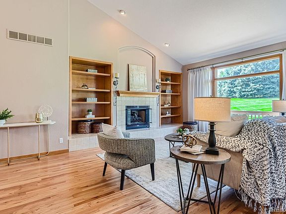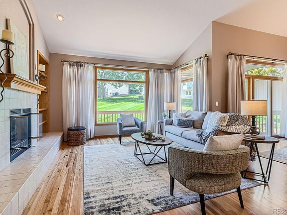 Nestled within the gated and tree-lined 55+ golf community of Gleneagles Village, this two bedroom, two bath home is surrounded by well-manicured green space and views beyond. Cheery light fills the home’s interior as vaulted ceilings cascade above the living room which features floor-to-ceiling windows and the dining room that looks out onto a covered back deck for dinners with family and friends. Trimmed by timeless finishes, stainless-steel appliances and a breakfast nook fill the eat-in kitchen. A primary suite paired with a five piece ensuite and walk-in closet, as well as a bright secondary bedroom and full bath are secluded from the main living area for privacy and uninterrupted relaxation. An ideal home office and main floor laundry with utility sink and storage, add to the home’s convenience and comforts. The basement is a blank canvas for expansion or valuable storage. Gleneagles Village includes a community swimming pool, walking trails, golf and bridge leagues and clubhouse on the golf course. Located minutes from South Suburban Sports Complex, restaurants and shopping, and Hwy 470 for access to the foothills and the majestic Rocky Mountains.