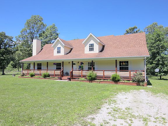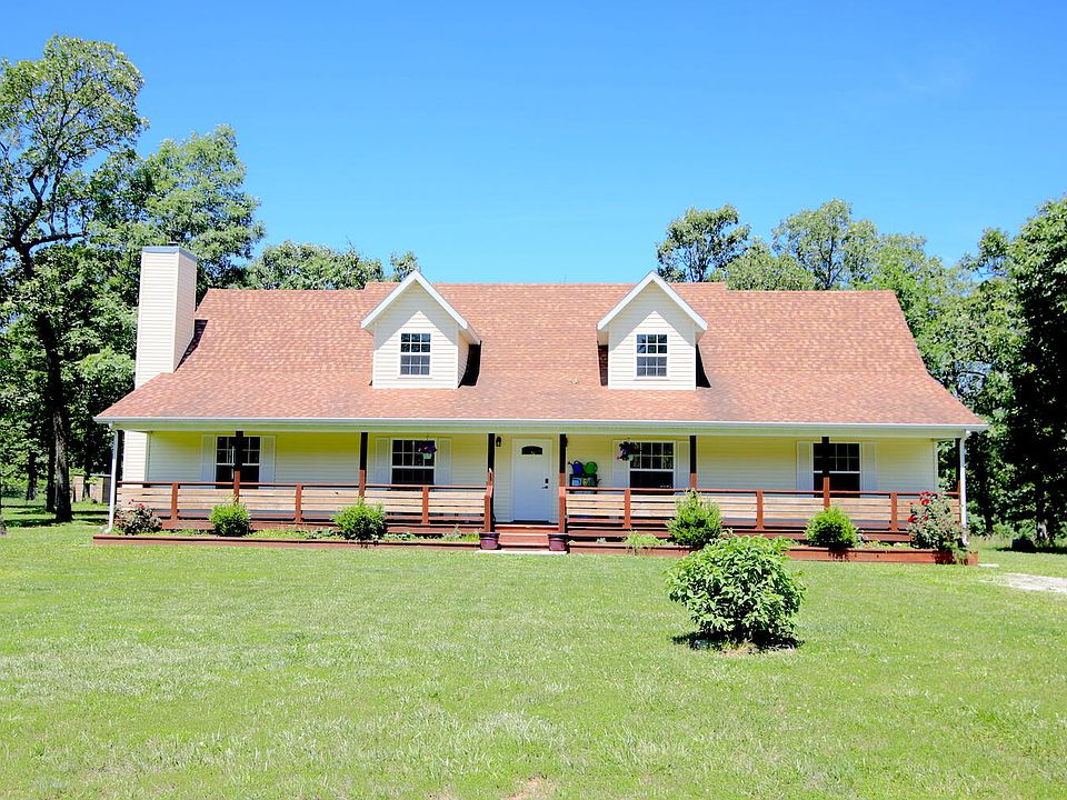 Hobby Farm in Missouri For Sale.!Located in Buffalo, MO in Dallas county. If privacy is what you're looking for then you won't want to miss this secluded location featuring a beautiful 4 bedroom, 2 1/2 bath Hobby Farm located at the end of Castlewood Lane, all on 19.37 acres m/l. Home features a 60 ft covered porch across the front of the home with two living areas with vaulted ceiling, newer hickory floors, wood fireplace/stove, large dining room, open kitchen with beautiful wood bar, granite countertops, stainless steel appliances, tile flooring and a half bath for your guests. Master suite is located on the main floor with a spacious walk in closet and private bath. Upstairs you will find 3 additional bedrooms and one bath with a bonus room that could easily be converted into a fifth bedroom. You will also find a 6x6 concrete storm shelter/safe room. Detached garage (32 X 34) with electric, wood stove and concrete floor, chicken coop, loafing sheds for livestock. Property is wooded/cleared combo, just around the corner from Greasy Creek and only 10 minutes from town.