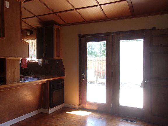 Unique remodel with vaulted wood ceilings decorative panels and shelves. Stainless steel appliances. Open floor plan with real wood floors and tiled kitchen and bath which highlights updated Sink and separate vanity area. Privacy fence around patio and solid outbuilding behind. Level lot overlooking beautiful pasture land. 3rd bedroom has built in dresser instead of closet. 3 bed 1 1/2 bath 1184 sq ft on 1 AC M/L. $125,000