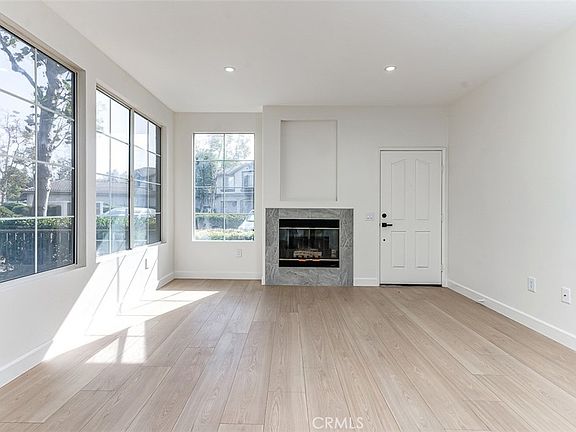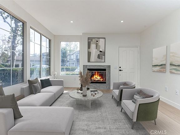 Welcome to this charming 2-bedroom, 2-bathroom single-story ground-level end unit condo in the highly desirable Salerno Community of Foothill Ranch. Offering over 1,000 square feet of living space, this fully remodeled home boasts an open floor plan that’s perfect for both everyday living and entertaining. The cozy living room features a fireplace, adding warmth and character to the space while the dining area and kitchen seamlessly flow into a private patio, ideal for BBQs and outdoor enjoyment.