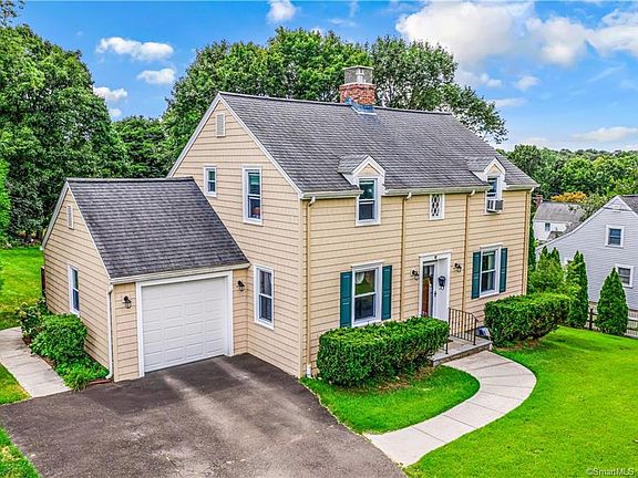 Solid well built Colonial offered for the first time in 32 years as owner prepares to move out of CT. This home features 3 bedrooms, 1.5 baths, original hardwood floors and built-ins, newer high efficiency thermal insulated windows and an abundance of natural light throughout the house. The large living room has a natural gas fireplace and leads through French doors to a heated sunroom complete with a vaulted ceiling featuring dual skylights and Bali insulated shades. The formal dining room, kitchen with granite countertops & tile floor, along with a half bath complete the first floor. Off the kitchen is a large pressure treated wood deck which overlooks a park like backyard. Upstairs has the home's 3 BR & full bath with a garden tub, cathedral ceiling & additional skylight. (On full moon nights, the glow @ midnight bathes celestial light down the staircase. The huge master BR includes a cedar closet, the 2nd BR has access via the closet to a walk up attic for additional storage & the third BR has access to another storage area above the garage, which offers expansion possibilities. Entry to the full walk out basement can be made from inside or outside where you can enjoy an additional bonus 700 sq ft ( not included in original measurement of living space. Perfect home for large or multigenerational living. Bonuses include 4 zone gas heat, 200 amp service, & attached one car garage with room for additional off street parking.