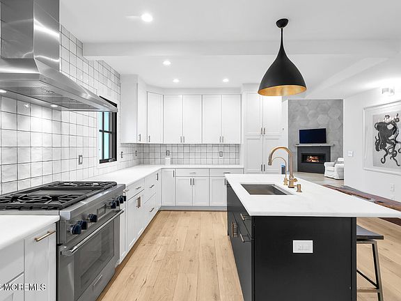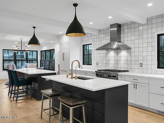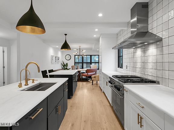 Gorgeous custom modern farmhouse brilliantly designed by Robert W. Adler with carefully curated finishes and many thoughtful details throughout - this one checks all the boxes! High ceilings, oversized double-height NY loft-style windows, and breathtaking natural light throughout. Gourmet kitchen with custom cabinetry, professional grade appliances, double islands with ample seating and expansive dining area opens to a large family room with vaulted ceiling and gas fireplace. Ultra private bluestone covered porch overlooking patio and rear yard, ideal for casual family living and entertaining alike. Sophisticated primary bedroom suite with tastefully appointed lavish full bath and fabulous custom organized walk-in closet. Spacious bedrooms with oversized closets including a first floor guest suite, beautiful baths with high end fixtures and designer tile selections. Gorgeous 8" Allegheny white-oak flooring, designer lighting fixtures, recessed lighting, custom plantation shutters, mud room with furniture-quality custom built-ins and so much more - too many amenities to list! Walking distance to top notch Fair Haven schools, downtown shopping and dining, and minutes to beaches and NY Ferry access.