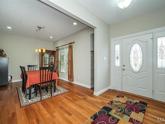 Spectacular two-story in sought after Villages of Dardenne on Large Corner Lot. Entering the home a formal dining and living room greets you notice the fresh paint. Home opens to a large great room with bay window and gas fireplace. Walk in to the breakfast room and kitchen which features under cabinet lighting, glass tile back splash, granite counters, 42” cabinets and breakfast bar. Sliding door opens to maintenance free deck overlooking the backyard and nearby community lake. Flooring throughout the main level is a beautiful scratch proof Brazilian Rosewood. Upper level features large bonus room, over sized master suite with double doors, three spacious bedrooms, and hall bath. Lower level walkout offers a rec area and additional bonus area, office/sleeping room, full bath, and kitchenette with second breakfast area which opens to the Covered patio below.Community offers pools, tennis courts, clubhouse, lakes and walking trails. Additional Rooms: Mud Room