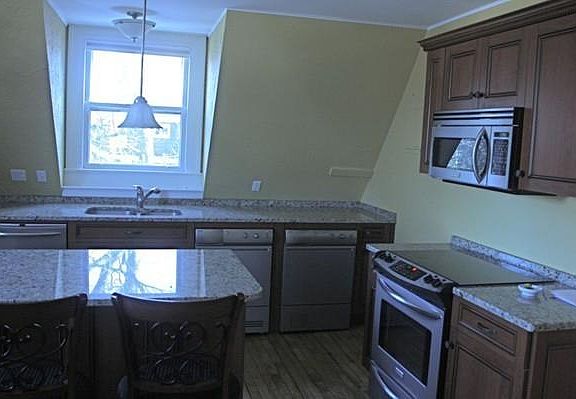 A MUST SEE - Stunning condo for rent in beautiful Newton home. Don't miss the opportunity to live in this amazing home. Grand staircase to enter your 3 bedroom including a master w/bath, bonus room could be used as an office. Wood floors throughout, unique woodwork and moldings, spacious living room with working fireplace. Updated kitchen with large center island, granite counters, updated cabinets and stainless steel appliances. Washer and dryer on main floor and additional set in basement for your exclusive use. Beautifully landscaped yard exclusive use of back porch, yard is shared. Unit includes 2 off street parking spots and additional storage in the basement. Good credit and references a must. Non smoking. Excellent location - easy access to public transportation buses including #57, #504, #555, #556, to Boston, Kenmore Square, Copley. Popular restaurants, yoga studio near by. Close to major highway mass pike.