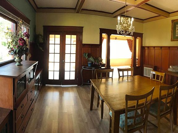 You will love walking into this classic Craftsman style home with formal dining with high wainscoting, plate rail, built-ins & tray ceilings. Wrapping around in to the large & bright living room with bay window, more built-ins next to the old fireplace hearth & wavy glass windows. Head back into the large eat-in kitchen with tons of cabinets, counter tops & storage, a great place to do canning or host a large dinner party. 2 bedrooms downstairs & 2 more bedrooms upstairs. Upstairs offers an additional sitting area perfect for kids to hang out with a gaming system or have a separate space. House has a separate laundry plus & additional store room. Property has a detached 1 car garage/shop, just right for storage and projects. Mature landscaping adds charm to this diamond in the rough