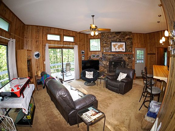 Nantahala rancher located close to Bryson City, 2 Bedroom , 2 Bath in a gated community. Nice open floor plan with rock wood-burning fireplace. Large open deck for enjoying nature. Also located on the property is a garage with an apartment above it. 2021 new HVAC. Private setting. This home is currently a successful vacation rental.