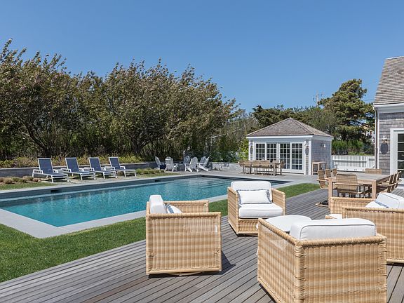 Set on a hill at the foot of Cliff Road & Sherburne Turnpike, "Picture Perfect" is an idyllic Nantucket setting for spending time and building memories with friends and family. Moments from Steps Beach, Something Natural, at the start of the Cliff Road Bike path and minutes to downtown Nantucket, this 6 bedroom, 6 plus bath home features a front porch for watching the world go by and a private backyard pool and patio. Mature trees dot the property, offering both shade and privacy. Renovated in 2022, this home has all the modern systems and amenities while offering the nostalgia of summer's past.