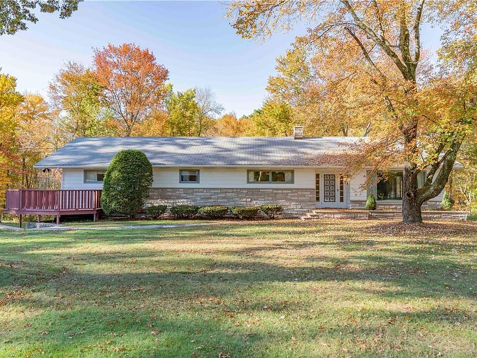 AO 11/10 .Sprawling 3/4 bedroom ranch with beautiful stream on 2.2 private acres, ideal for large or growing family. Home has great curb appeal. 4 full baths. Living room with Limestone fireplace, family room up and down with brick fireplaces. Large first floor family room with door to private back yard. Hardwood floors throughout most of the home. Large primary suite with balcony. flowing stream in the side and back yards. New furnace, AC, compressor and hot water heater. Conveniently located near the Taconic, shopping, schools etc. Additional Information: HeatingFuel:Oil Above Ground,ParkingFeatures:3 Car Attached,