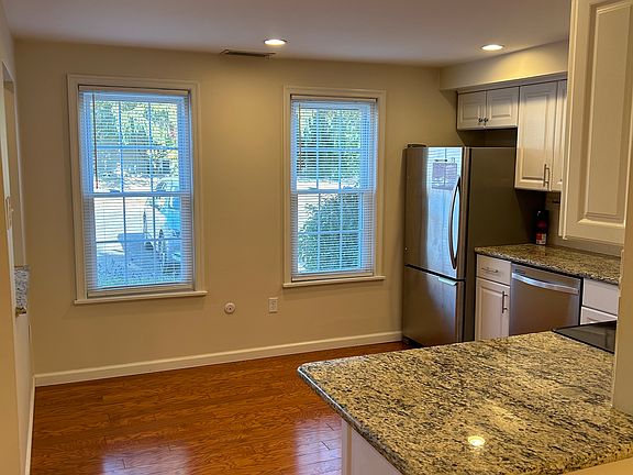 Located in sought after Olde Colonial Greene in Doylestown, Pennsylvania this updated, light filled home has an open floor plan featuring a sunny white kitchen with granite countertops, subway tile backsplash, and stainless steel appliances. This townhouse has a great location with a ground level sliding glass door that leads to a private patio with a woods view. The flooring consists of some original refinished hardwood flooring, matching laminate flooring and carpet in the bedrooms. All 3 bathrooms include modern fixtures with porcelain tile floors. The master bedroom features a modern full bath, two closets, one is a cedar closet. Two other bedrooms, a modern hall bath and laundry room with appliances included complete the upstairs. All windows are newer Low E energy efficient. The community is family oriented complete with Central Bucks School District schools: Doyle Elementary, Lenape Middle School and Central Bucks West. There is also a great playground and basketball court. It is within walking distance to Doylestown Hospital and this fantastic location is close to travel means and Doylestown Borough. Owner pays HOA fee which includes trash and recycling collection, snow plowing and common area maintanence. Tenent is responsible for electric, water, sewer and heating oil.