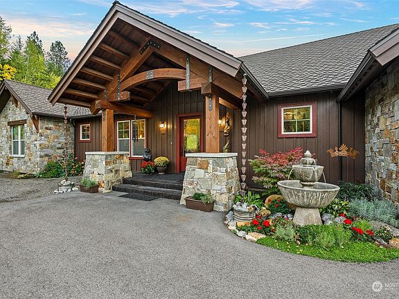 Stunning Hendricks Built Lodge with unobstructed Sleeping Lady & Wedge Mountain views located on 2.55 fenced acres off Dempsey Road with professional landscaping & rambling brook water feature. Large wood beams, cathedral ceilings, master stonework, reclaimed wood trim & a stunning fireplace. Open living concept, one level living, abundant natural light throughout & views from every window. Gourmet kitchen includes Wolf double oven, Miele Refrigerator, Asko Dishwasher & amazing butlers pantry. Primary en-suite boasts incredible views, walk-in closet, heated tile floors, tile shower & soaking tub. Auto sprinklers & irrigation. Oversized 3 car garage includes apartment with private entrance & deck perfect for extra guests or rental income