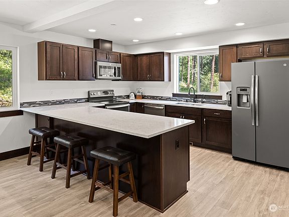 Like new craftsman style home on a 1/2 acre private sunny lot. Shows like a new construction home with all the upgrades including Geothermal heating. Extensive use of stone, tile, quartz with an open floor plan concept. Master bath has a walk-in shower and finer surfaces. Bonus room up, great room down, oversized utility room. The community offers a clubhouse & sunny pool that has knock out Stewart Mtn view from the pool deck & grounds. Ride quads, hike, snowshoe.... it's all here. The home also has a generator!