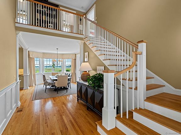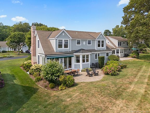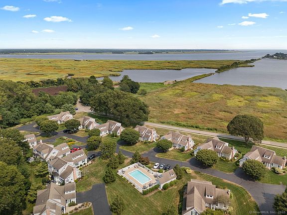 Beautifully appointed home with a captivating panoramic water view of North Cove and CT River. Free standing 2400+ square foot home in a small over 55 community of 16 luxury residences. This Nantucket style 2 story home was upgraded with wonderful amenities and tasteful touches inside. A designer kitchen was added with center island, granite counters and custom cabinetry. The addition of raised paneling and crown moldings are found thru out the home and gleaming wood floors on the main level. A formal dining room is spacious with new bow windows and features an open concept design into the living room with fireplace. A wall of glass doors for easy access to a large outdoor patio surrounded by lush landscaping and an electric awning to be enjoyed thru out the summer. Back inside you will find a remodeled powder room and a separate laundry room. A large open foyer with vaulted ceiling and wide staircase brings you up to the 2nd level or take the elevator! Upstairs you will find a guest bedroom, full bath, office and Primary suite. The Primary includes a sitting area, his and her walk-in closets and a renovated lavish bathroom with radiant heated floors. The convenient In-town location allows you to walk or bike to shopping, restaurants, train and more. A rare offering in a wonderful small seaside town. Super Stunning!