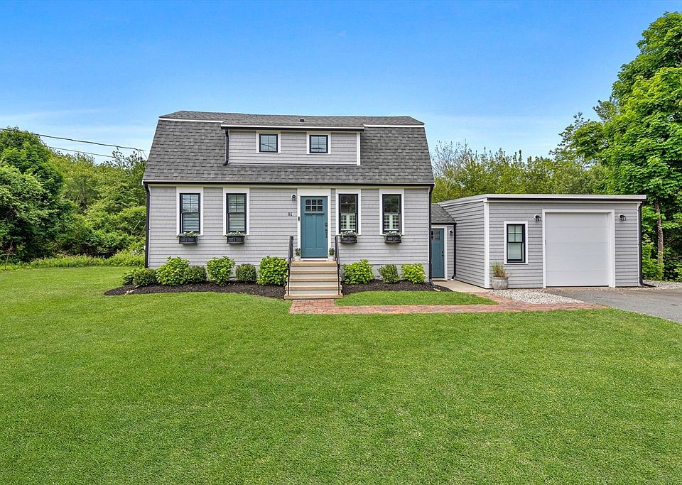 Coastal charm & modern convenience fully displayed in this completely renovated (2021) Dutch Gambrel! A charming retreat, this 3 BR, 2.5 BA home features a bright & airy first-floor open living space perfect for entertaining. The sun-filled kitchen boasts quartz countertops, double islands, stainless steel appliances, stunning Spanish tile backsplash & a custom built-in banquette. Off the kitchen, glass doors lead to a composite deck ideal for quiet mornings & hosting al-fresco dinner parties. First floor primary suite includes a beautiful BA w/ tiled glass shower. Upstairs are 2 more spacious BRs & a full BA. Expansive ½ acre lot abuts conservation land & offers potential to create own backyard design! Bonus features include recessed lighting, hardwood floors throughout, basement storage, central air, Anderson windows & oversized garage. Walk to Untold Brewery, restaurants & commuter rail to Boston. Short drive to golf courses, local beaches & town center town. Your sanctuary awaits!