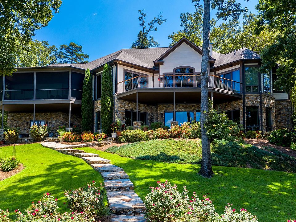 upstairs garage 1000 sqft downstairs garage 1150 sq ft extensive hardscaping and landscaping irrigation system can use city or lakewater huge kitchen with upscale appliances 2000 sq ft of open and covered decking back up generator centravac system under floor electric heat in the kitchen and master bath 2 slip flotation system aluminum dock extensive natural stone work on the exterior and stone gas fireplace upstairs porcelain tile thru out with 3/4 inch solid brazilian cherry hardwood upstairs extensive use of crown moulding thru out hand rubbed italian plaster upstairs