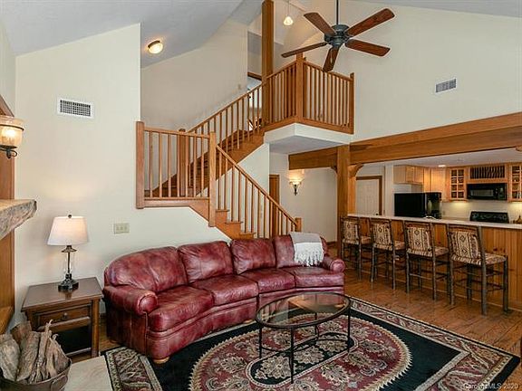 Top floor 3 bedroom, 3 Bath condo, Beautifully furnished and ready to enjoy. Main living area features rustic hardwood floors, kitchen, dining area, great room with vaulted ceiling, stone fireplace and lots of windows, Master Suite with separate shower and claw foot soaking tub, Guest Bedroom, Full bath, and laundry. The third Bedroom is on its own level with a private bathroom. Spacious open deck with sounds of nature and the creek. Just steps from the Camps at Creekside Park with hiking, picnic areas and trout pond. There is covered parking and storage in your private carport. Close to all of Mountain Air's activities and events. The perfect Mountain Escape