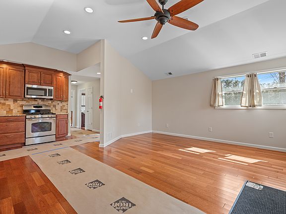 Move right into this beautifully designed home, where every detail has been thoughtfully updated. The welcoming living and dining area features hardwood floors and soaring ceilings, creating a bright and airy feel. The chef's kitchen is equipped with custom cabinetry, stainless steel appliances, and granite countertops, making meal prep a pleasure. A laundry area and closet conveniently lead to the side entrance, providing easy access to the parking area and a serene, shrub-enclosed yard. A half bath is situated near the first bedroom, while the cathedral-ceiling primary suite offers two double closets and a refreshed full bath. Nestled near the Ramapo River and Route 287, this home offers both tranquility and convenience. Credit check, interview & tenant insurance required. Tenant responsible for first $200 of each repair, Renters Insurance, 1.5 Month Security Deposit, No Smoking of any Kind, No Pets Tenant Pays: Gas, Electric, Heat, Snow Removal Owner Pays: Taxes/Garbage, Lawn Maintenance