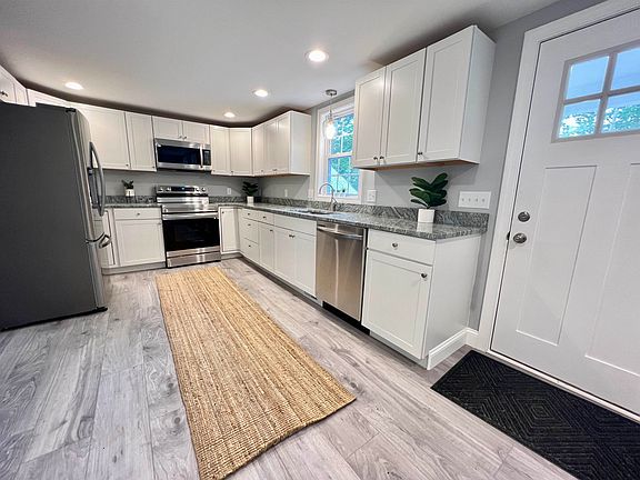 Welcome to 81 Dover Road, a meticulously renovated farmhouse that seamlessly marries timeless allure with modern comforts. Situated just a stone's throw from downtown Durham and easily accessible via Route 4, this gem boasts a first-floor master suite for effortless living. The dining space is adorned with an authentic window set, illuminating the area with natural light. The upper level houses two guest bedrooms, complemented by a freshly updated bathroom. In total, the residence features three modern bathrooms. The farmhouse's restoration highlights a perfect balance of historic elegance and contemporary flair. A separate barn offers versatile storage, suitable for vehicles or tractors, and holds potential for various uses. The expansive backyard is an ideal setting for outdoor leisure. For those considering a home-based business, this property presents an excellent opportunity, further enhanced by a charming outdoor rock fireplace that encapsulates New Hampshire's essence during chillier months. Relish the proximity to downtown Durham's bustling atmosphere, complete with a diverse mix of shops, eateries, and entertainment. Plus, the residence falls within the esteemed Oyster River School District. Seize the chance to claim this beautifully revamped 1921 farmhouse as your own.