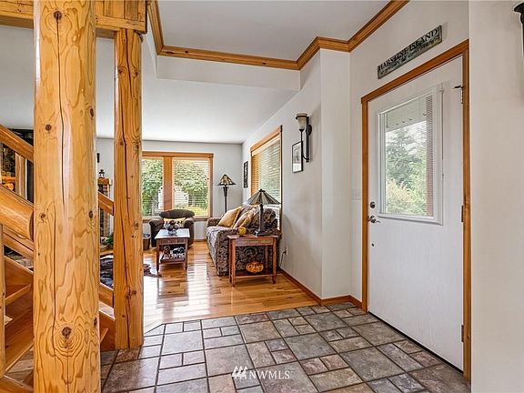 Stunning waterfront home on Harstine welcomes you. This custom built 1942sqft home overlooks Pickering Passage & the Olympic's. 233 ft of waterfront w/path. Nestled on 3+ beautiful acres, large garden space, completely landscaped w/fruit trees, wildlife & more. Lovely kitchen w/custom hickory cabinets & floors, granite counter tops & stainless steel appl's. Large detached garage w/wood stove, sizable loft upstairs, covered parking for 4. Gated entry, mostly fenced. 2 parcels both w/septics.