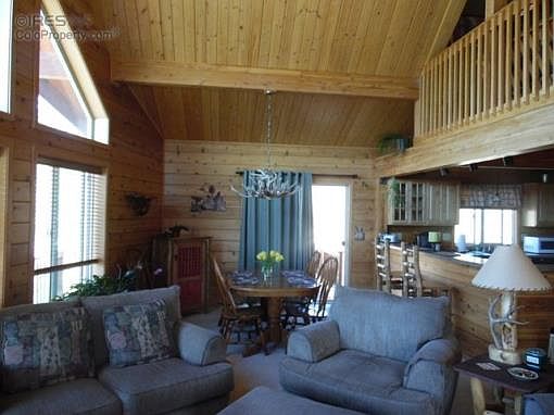 81 Eagles Nest Court1622 sq/ft2 Bedrooms, 2 Bathrooms2.49 Acres Spectacular setting with 2.49 acres of level to gently rolling land and incredible views of the snow capped "Mummy Range". This cedar home offers spacious open floor plan. Kitchen has upgraded counter tops and new appliances. The large laundry/mud room has great storage. Upper level master and loft/office. Large deck on 3 sides of house partially covered to enjoy those great views. Very well maintained and cared for. Includes storage shed and offers a great well at 15 GPM