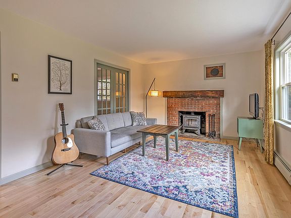 Nestled in the woods for peace and privacy, but close to the amenities in town, this well-maintained house will surprise you with its updates and great layout featuring 3 bedrooms and 2 bathrooms on 1.76+/- acres. The house is light and bright with lots of windows, new floors throughout, and generously sized rooms. The main level has a spacious living room with a woodstove insert, a large updated kitchen with access to the side deck, a dining room, bathroom, and a bedroom (that could also be an office or den). Upstairs are two big bedrooms, each with a large walk-in closet, and another bathroom. There is a full partially-finished basement with lots of bonus space for work or relaxation (game room or office?), hobbies, laundry, storage and more. The lot is level and sunny, and features naturalized gardens, flowering trees and shrubs, and you can enjoy the beautiful outdoor spaces for gardening, play or gathering around the firepit. Londonderry offers school choice for most grades and is centrally located to all conveniences (shops, restaurants, hardware, bank), and summer and winter recreation options are nearby in any direction: 6 ski resorts within 7-50 minute-drive, Lowell Lake for paddling and walking trails in the summer, the best summer farmer’s market is just around the corner, and great theater, music and arts at every turn. This is a dynamic community and you won’t have to go far to enjoy everything that makes this part of Vermont such a wonderful place to call home.