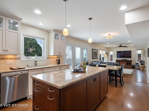 Situated on a tree-lined cul de sac, this stunning four-bedroom home, completely rebuilt in 2012, features impeccable attention to detail throughout a well-designed floor plan, overflowing with natural light. A gourmet, dine-in kitchen with granite countertops, stainless steel appliances and white cabinetry opens to an expansive family room, with access to the professionally manicured backyard and brick paver patio. French doors lead to a formal living room, complete with gas fireplace, custom window treatments and recessed lighting. A spacious master bedroom with walk-in closet and updated master bathroom. Hardwood flooring throughout first and second floors. Additional 750 sq ft in finished basement. Two-car garage. Nationally-recognized Stevenson High School. Located just blocks from restaurants and transportation, this is a remarkable home in a wonderful neighborhood!