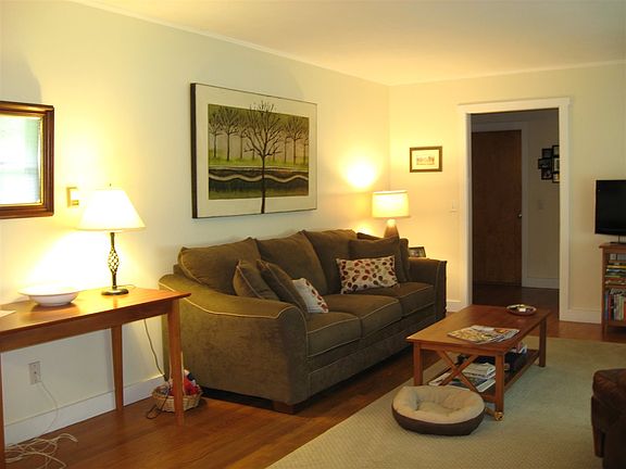 Wait until you see this home! Starting with the all new kitchen (maple, tile, stainless, and more) and then on to the open living dining room with built-ins. Huge picture window with insulated shades. 3 comfortable bedrooms and a large updated bath with tub and separate step in shower. The bonus space on the lower level is huge! Awesome family room for any activity you can think of. There is an office/craft room with loads of built-ins. There is also a workshop on this lower level. A large laundry room and half bath as well on this level. If you like to hang your clothes out, you will love the walkout door from the laundry room. The roof has been updated as has the Buderus boiler. Many new windows. This home sits on a corner lot with a large tree-lined buffer on the right side. There is a back yard that is big enough for some serious play, or large gardens. Wonderful neighbors, too. This home is handy to town which is terrific if you are on the run all the time. The Upper Valley is an easy drive. Fiber optic internet is a huge bonus. I think you will like what you see!