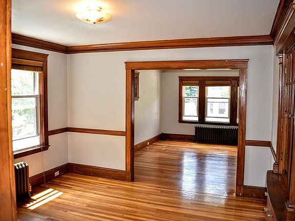 Large living room which flows into a ample dining room with period hutch plus eat in kitchen with stainless five burner gas stove, stainless dishwasher, granite counters, and fridge. Large, enclosed back porch and access to huge unfinished attic space perfect for storage. Three bedrooms, one with enclosed front porch attached. Linen closet in vestibule across from bathroom. Off street parking includes one GARAGE SPACE plus driveway space. Exclusive WASHER & DRYER in basement plus large storage area. Shared back yard. Great access to Rolsindale Village shops, restaurants, and farmer's market. Very close to Roslindale Village Commuter rail stop (18 min to South Station!). Great access to buses, parks, and points South including Rts 1, 95, & 93
