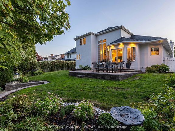 A Rare Ravine lot, custom home in Erion Estates, surrounded by mature trees. This bungaloft feels private, peaceful, and grand all at once. From the moment you walk through the front door, the home opens up with 2-story ceilings, large windows, and an abundance of natural light. Designed for easy main-floor living, the layout flows effortlessly with everything you need on one level. The spacious kitchen sits at the back of the home overlooking the ravine, offering a large island and a dining nook surrounded by views of your oasis yard. The family room feels open and inviting with double-height windows framing the treetops with a gas fireplace and has direct access to backyard patio through the siding door. The main floor primary suite is a true retreat featuring two walk-in closets and a generous ensuite with double sinks, a jetted tub, and shower. You also find a formal dining area, a bright living room with a wood-burning fireplace, main floor laundry with access to the double-wide heated garage, and a powder room for guests. Upstairs overlooks both the foyer and family room, along with two additional bedrooms and a full bathroom. The basement is partly finished with just under 8-foot ceilings. There is an additional bedroom with two walk-in closets and a spacious connected lounge space. Rough-in plumbing is also in place in the basement if you wish to add an additional washroom or kitchen to create separate living accommodations. The backyard oasis is what truly sets this property apart with the lush, private ravine setting and established gardens with an irrigation system to keep it looking its best year-round. Homes like this, combining a ravine lot, timeless design, and a main-floor lifestyle, rarely come to market in Erion Estates.