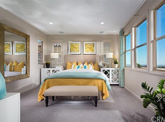 Brand NEW HOME with a premium ridgeline location and gorgeous MOUNTAIN VIEWS at The Peake by Shea Homes in the resort-style community of Baker Ranch with NO MELLO ROOS! Beautifully upgraded 3 bedroom +Office/2.5 bath home has an open, spacious Great Room floorplan featuring a contemporary Kitchen with quartz counters and large island with sink and space for barstools, upgraded hardware, upgraded flooring, Mineral (grey) shaker cabinetry throughout (as in Kitchen photo) and GE stainless steel appliances. Large Dining Area with door to patio and plenty of windows for a light and bright entertaining space. Over $69,000 in designer options also includes recessed lighting, upgraded insulation and Great Room surround sound pre-wire package. Generously-sized upstairs bedrooms include an elegant Master Suite with dual sinks, rain can shower head, gorgeous tile shower with seat and large walk-in closet. Convenient upstairs Laundry Room features storage galore, sink and washer/dryer hookup. Backyard includes an extended wood trellis and glass/block wall high on the ridge providing beautiful, serene mountain views perfect for relaxing or entertaining.