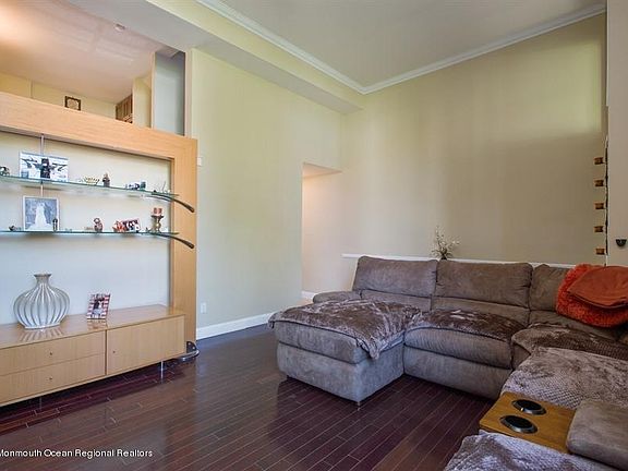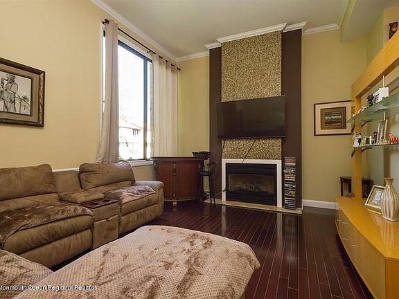 End unit townhome in a beautiful, private location with water view and flexible floor plan. Home features 2 story living room/great room with gas fireplace. Look up to the 2nd level and see a terraced dining room. (Previous owner reversed living room to 2nd level and dining room to 1st floor to fit their lifestyle needs.) Then there's the dream kitchen with breakfast bar, newer bathrooms, and, most floors replaced with wood and laminate. Master suite with spa-like master bathroom shower and customized walk-in closet. Stackable washer/dryer in a section of the 2nd bedroom double closet.Basement is finished with a full bath, plenty of closets, and lots of light. Air-conditioning and furnace recently replaced. A great place to live. Home Owner Warranty included.Easy access to NJ Turnp