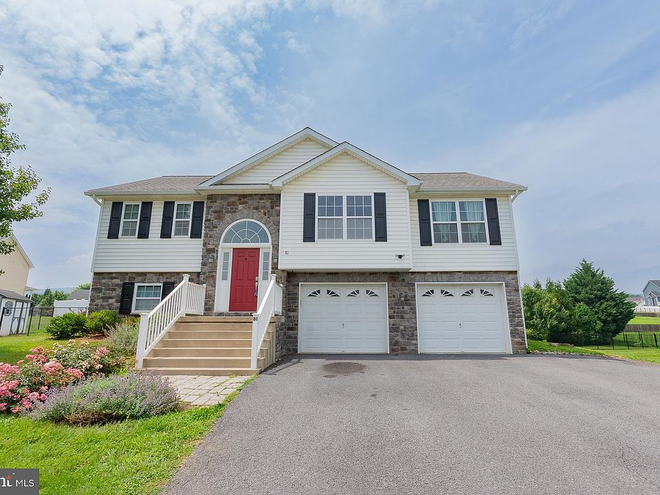Charming Split Foyer located on a quiet cul-de-sac in the desirable Butler's Ridge Subdivision, this stone and vinyl split foyer offers both comfort and convenience. Just minutes from I-81, Berkeley Medical Center, shopping, and dining—perfect for commuters. This home features 3 bedrooms and 2.5 baths, with an open-concept main level that includes a vaulted ceiling in the living room and a modern kitchen with stainless steel appliances. Flooring throughout includes luxury vinyl plank, carpet, laminate, and vinyl. The finished lower level offers a spacious family room, laundry area, and half bath. Step outside leading to a fully fenced backyard with a patio, firepit, and storage shed. Don't miss your chance to tour this well-maintained home in a prime location!