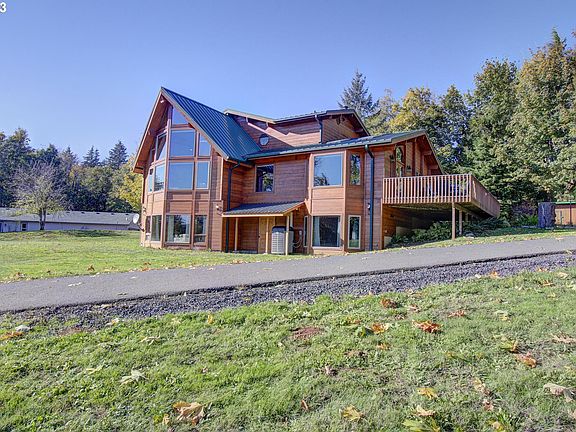 Stunning custom Lindal Cedar Home with breathtaking views! This custom log home was built with premium western red cedar, quality finishes and no detail was missed. The open floor plan flows with soaring vaulted ceilings, extra wide solid wood doors throughout and an impressive wall of windows to take in the Pacific NW view. Warm your winters with 2 gas fireplaces and a new heat pump with forced air furnace. 2 spacious primary suites with full spa-like bathrooms. The main floor primary suite offers a large soaking tub, walk in shower, double sinks and double closets. Upstairs features another large primary with a private balcony, walk in closet and a newly remodeled gorgeous bathroom with a custom tile walk in shower. The full walk out basement could serve as separate living quarters/ADU. The basement is fully finished and features a gas fireplace, wet bar/kitchenette, full bath, bedroom and huge bonus space. Outside you will find just under 3 acres of property with lush grass bordered by trees and plenty of areas for entertaining, gardening, animals or just relaxing. 2 SHOPS and a covered parking structure make this a perfect package! Large shop is 36x60 with a concrete floor, steel frame and extra large roll up RV door. 2nd shop is 24x20-both shops have power. There is nothing else like this on the market so call your favorite realtor for a showing today!!