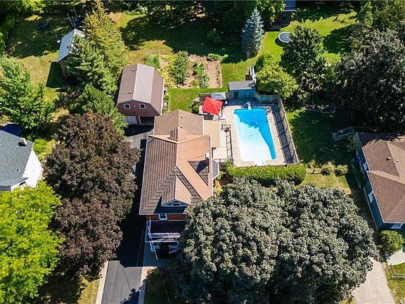 Welcome Home!! Your search for the perfect family home in a small village is over! Built in the early 1900's, the beautiful home is sure to impress. Offering spacious rooms, high ceilings and large windows which bring in lots of natural light. Original baseboards, hardwood flooring and charming pocket doors on the main floor give this home warmth and character. The addition features large windows, a Great Room for entertaining and access to the lovely composite deck with remote control awning. The lower level adds another bedroom and storage space with separate entrance. Upstairs there are 3 large bedrooms, a 4-piece bathroom, access to the balcony and fully insulated attic. The double car garage with workshop features extra storage space with hydro and a loft. Separate fuse panel and a compressor. The large double wide driveway provide parking for 8, or a great game of road hockey! The original basement has laundry, furnace, water softener and hot water heater (Reliance). 200 AMP service. This thoughtfully landscaped property boasts lush gardens, mature trees and a HUGE 36 x 18 heated, inground pool. Book your personal viewing today!