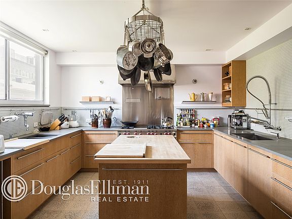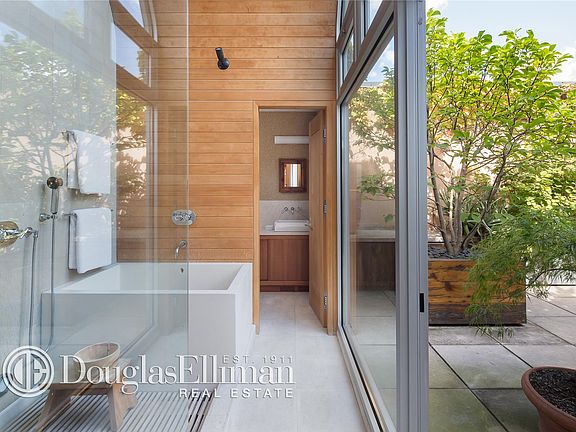 The Urban Estate. "The product of ingenuity, history and taste, it gets my vote for top townhouse for sale in all of New York City." - New York Daily News. A true masterpiece! This totally original, one-of-a-kind 4-story home offers that discerning buyer a rare opportunity. Boasting over 10,550 SF of impeccably-designed living space, 2 pre-existing buildings - a 19th Century schoolhouse and adjoining townhouse - seamlessly joined to create a flawless flow. The 3-story red brick and terra-cotta schoolhouse was beautifully restored and the 4-story townhouse rebuilt with a new faade, resulting in a showplace property used as a high-profile artist's live/work space. The building's bold and unique architectural design stunningly contrasts the traditional charm of the old brick building with the modernized zinc standing seam wall (added to enlarge the 2nd, 3rd, and 4th floor spaces) and the sleek metallic roof. Private indoor parking, gym, open artist loft. 3 Terraces in addition to a surrounding side garden. Stunning double height living room with wooden beams and a wood burning fireplace. As described in the New York Times, "On the second floor, the living area, housed in the former Masonic Lodge, has a double-height ceiling with exposed beams and four skylights. That space seamlessly flows into a large kitchen with professional-grade appliances, double sinks and a breakfast nook. Toward the front of the home, in the town house, there is also a sunny office with polished cork floors and walls lined with dark green felt. The master bedroom and en-suite bath take up the entire third floor of the town house. Bordered by a landscaped terrace at one end and a Zen garden at the other, it is a blend of minimalism and eco-chic. The indoor/outdoor design extends to the shower and Japanese soaking tub in the master bath, which opens onto the terrace and can be viewed through a glass wall from the bedroom." Lot Dimensions: 37ft x 110ft.
