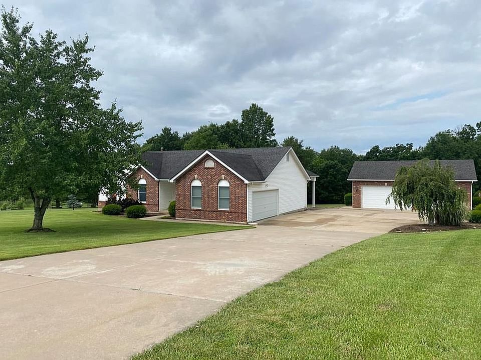 This gorgeous 3BD/3BA ranch home situated on 3.13 acres in private neighborhood features vaulted ceilings, hardwood floors and a gas fireplace. The French doors will lead out to a large covered patio overlooking a beautiful backyard great for entertaining. The kitchen, dining room, & living room blend together seamlessly with the open floor-plan. The spacious master bedroom has a walk-in closet and bathroom. The guest rooms offer adequate size and closet space; full guest bath on main floor hallway. Downstairs are a family room/game room, a 20 X 10 office space, full bathroom, laundry room, workshop area & storage, not to mention the French doors leading to the back yard. The 2 car attached garage leads you to a mudroom/utility area, but you’ll have plenty of room for in the large 3 car oversized detached garage. Enjoy the country living & work from home w/high speed (fiber) internet with easy access to St. Charles and Wentzville Schedule an appointment by email at 81harrislane@gmail.com
