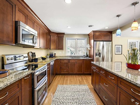 This beautifully redesigned five bedroom, three bath home sited on a private level lot near public transportation and commuter routes is filled with light and great surprises! A major renovation and thoughtful addition provide an open floor plan with new granite & stainless kitchen, large island, dinning room, 1st floor laundry, third full bath, stunning hardwood floors throughout, an upgraded 200 amp electric service, insulation, central air and solar panels that pay 100% of electric bills!! A rebuilt garage with new ceiling, floors and garage doors is an added bonus as well as the two newly added lower level recreation rooms. This home is absolutely TURN-KEY as it is freshly painted and in pristine condition! The wait is over, this family home checks all the boxes, plus someWelcome Home! OH Sat & Sun 1:30 -3:30, see you there!