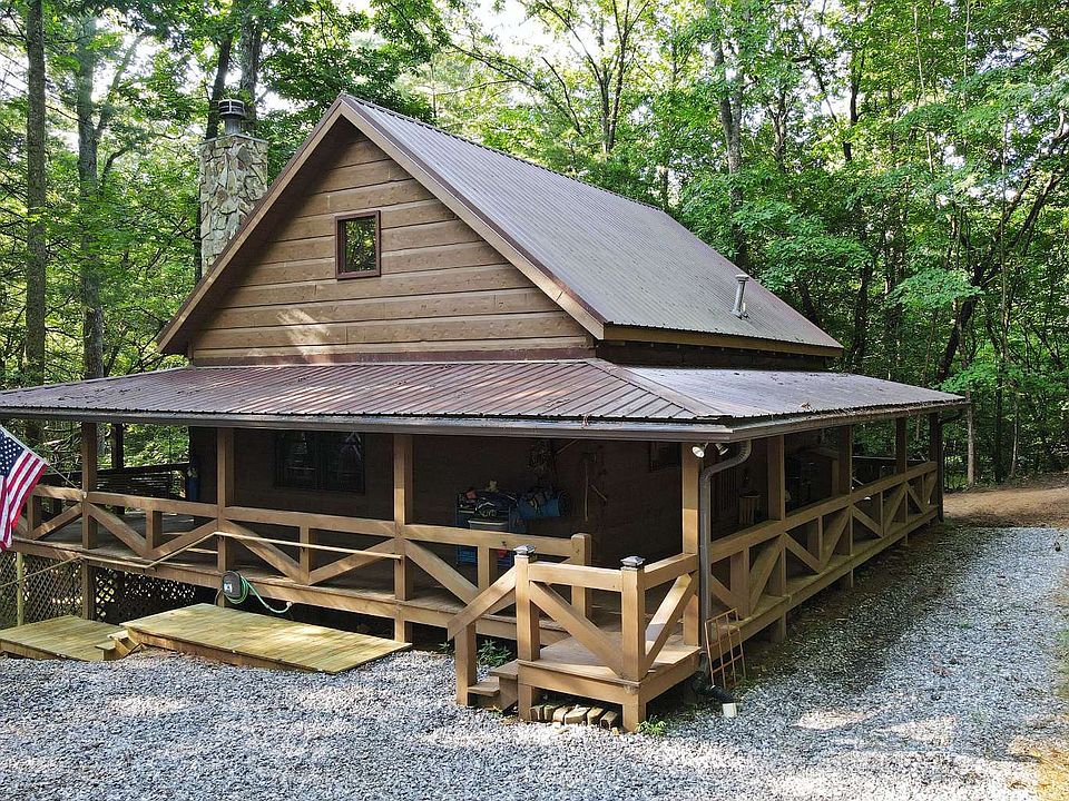 Hard to find has been found! Drive to the cul-de-sac to see a true log home sitting on 1.28 acres of private land with a pond and creek that passes two different times on your property. Short Term Rentals are allowed. Experience all the nature that's in the area; The home is so close to Springer Mountain, Head of the Appalachian Trail, it's nestled in the heart of the Aska Adventure area, Hiking, Bicycling, Water Adventures, Toccoa and Lake Blue Ridge, and other natural amenities are close by USFS. This home has many new updates, a New Hot Water Heater, Countertops, HVAC, Roof & Gutters, a Fresh Coat of Stain to the Whole Outside, Sanded and Poly Floors, and a New Deck at the Upstairs Loft. This 3bd/2ba offers an open floor plan, wood-burning fireplace with a loft bedroom w/ba.