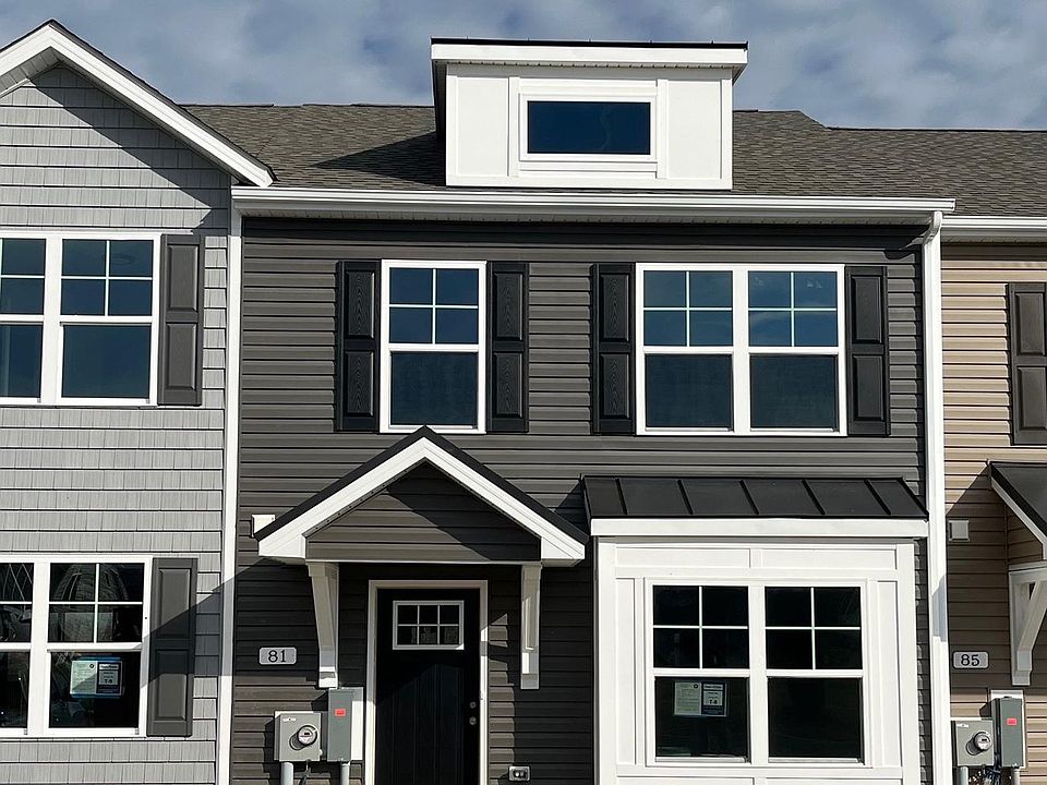 Under Construction. 3 bedroom, 2.5 bath 2-Story town homes featuring spacious room sizes, luxury vinyl plank flooring in main living areas, Bump out in main level family room, and kitchen with island, granite countertops, and pantry. The Primary Bedroom has walk in closet and full bath with double vanity and tile shower w/ glass door. All homes come with natural gas heating system and brick accents on front. 10x12 Rear deck included and builder pays 3% closing assistance. Photos are similar construction