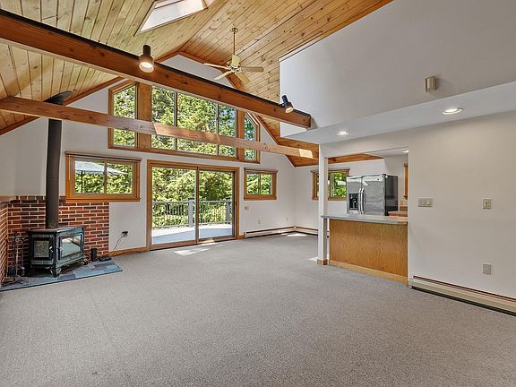 • Cathedral Ceiling(s), Ceiling Fan(s), Dining Area, Kitchen/Dining, Natural Light, Wood Stove Hook-up