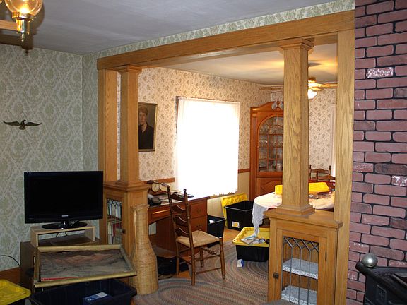 This lovely Colonial has some very unique and beautiful wood features. Opposing Oak Columns that divide the living and dining rooms are mission in style with one side featuring leaded glass door cabinets as well as a beautifully built-in corner hutch to display your prized dinnerware or collectables. Hardwood floors are in all rooms except the kitchen, and bathrooms, Franklin Fireplace in Livingroom is a stunning but potentially helpful additional heat source. Nice yard, close to town, some dual pane windows, concrete basement, 100 amp CB. Garden Shed is 11.5x 7.4. This home will go fast, call us and set up your viewing appointment now!