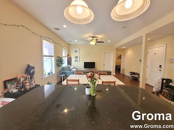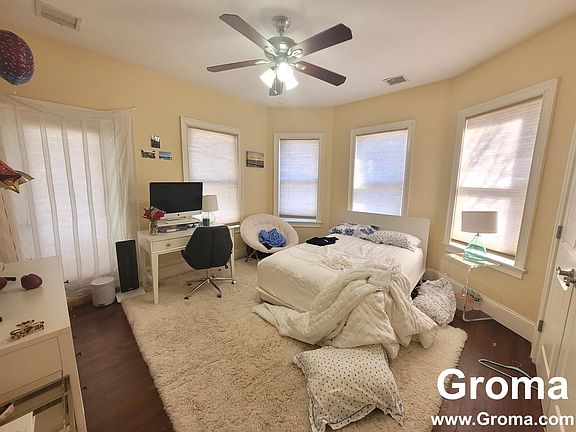 Students OK. Renovated spacious four bedroom, two bathroom apartment. Great location on the corner of Hillside and Calumet Streets. Kitchen with stainless steel appliances and granite countertops opens into sun filled living room. Hardwood floors throughout, marble bathrooms. Front and rear decks accessible by private entrances in each of the four bedrooms. Laundry in unit. Tenant pays for all utilities including water and sewer. Parking available at additional cost. 12 months