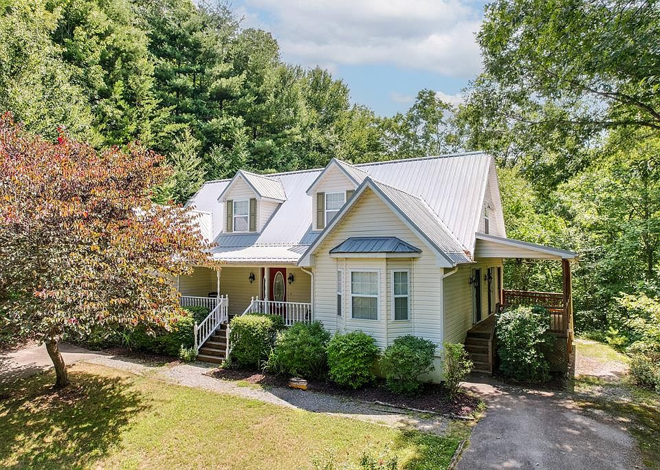 Tucked among captivating vistas, this well-crafted home on a private road offers the perfect blend of seclusion and convenience. Step inside and be greeted by a brand new kitchen that's a chef's dream. Custom cabinetry provides ample storage while gleaming granite countertops offer a luxurious prep space. The open floor plan seamlessly connects the kitchen to inviting living areas. The roomy primary suite offers a jetted tub for soaking away the day's stresses. A convenient mudroom and laundry room keep your life organized, while two additional bedrooms upstairs offer space for guests. Venture outside to your expansive 5.25+/- acres of pristine land. Unwind on the patio, explore the woods, or simply soak in the peace and quiet. The unrestricted acreage allows you to dream big, while a second lot with a large RV shed and potential bonus living quarters provides endless possibilities. For added peace of mind, the roof and HVAC system were both replaced in 2021, ensuring worry-free living. This unique property is the perfect escape for those seeking serenity or a savvy investment for the future-minded.
