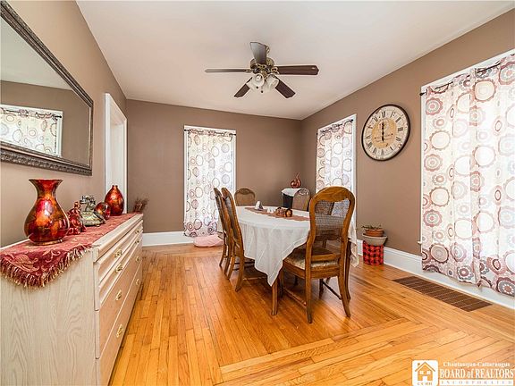 This charming 3-bedroom, 3-bathroom home is located on a corner lot in Randolph. It features a kitchen with a breakfast bar and Corian countertops, a spacious living room, dining room, and a welcoming front room. The convenience of main-floor laundry and a full bath is an added feature. Upstairs, you'll find three bedrooms and two more full bathrooms. The house boasts beautiful hardwood floors throughout and updated replacement windows. The full basement is dry, with concrete floors and sturdy slate stone walls. Outside, the property offers a well-maintained lawn, a covered front porch, and a detached garage with added electric. Additionally, the house is vinyl sided, and recent repairs have been made to the front deck, enhancing its appeal.
