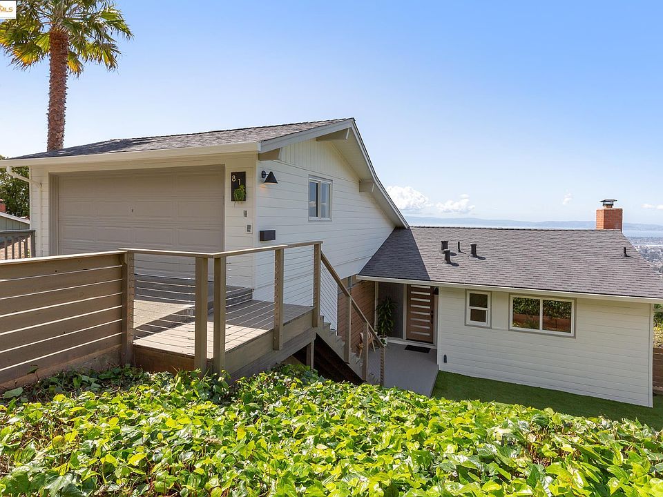 Welcome to Crestmont — one of Oakland’s best-kept secrets. Perched above it all, this refreshed and stylish home offers jaw-dropping panoramic views that stretch from Mt. Tam to the San Mateo Bridge. What makes this neighborhood extra special? It’s one of the only hillside areas with sidewalks and underground utilities — a rare and welcome perk in today’s world. Inside a wall of windows frame the incredible scenery, sliding doors connect the living room to a large view deck.The kitchen is a showstopper, with sleek finishes, stainless appliances, and plenty of space to gather. The main level includes an ensuite bedroom perfect for guests or an office. Downstairs, the private primary suite features a sitting area, large closets, and direct access to a serene patio. Two additional bedrooms and a laundry make everyday life a breeze. The level backyard is a rare find in the hills — landscaped for low-maintenance enjoyment; usable for play, gardening, or just relaxing under the sky. Whether you're hosting friends, setting up a hammock, or letting pets roam, it's a versatile space that adds much to everyday living. And to top it all off; it's a short distance to Roberts Regional Recreation Area, Joaquin Miller Park, Sequoia Bayview Trail Trailhead and Woodminster Amphitheater.